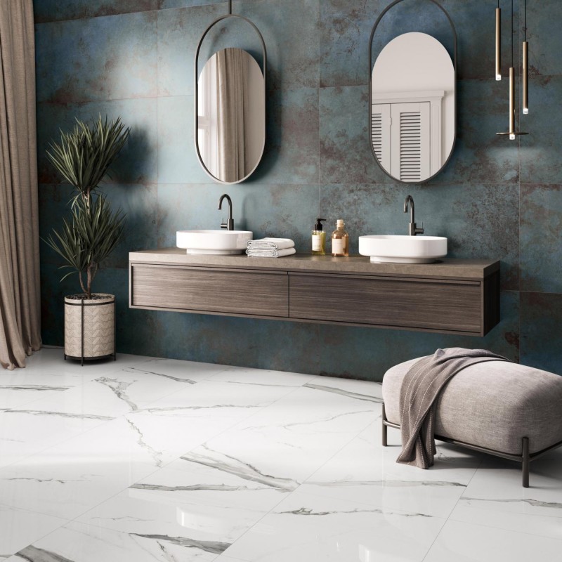 Le format 60x120cm est aussi disponible en version mate et brillante. La finition brillante est idéale pour les salles de bains en pose murale par exemple. Enfin, l’épaisseur des carreaux ALLOY est de 10.5mm.